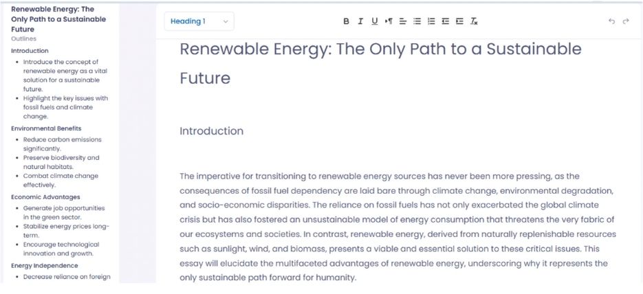 Later, you can edit the content according to your needs in the editor to make the essay stand out. Manually proofread to eliminate any rare slip-ups from the tool and ensure that all the key points are coherent.